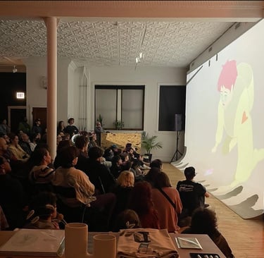 The crowd of approximately 200 people – an impressive number given the plethora of options during EXPO Chicago - collected their complementary beverages (malted or otherwise) and quickly filled the seats. The theme of this edition of the event was “Space” but not so much the celestial realm where stars exist but more so the contemplation of what it means to have a place to be one’s true self and what home truly means. Accompanying the viewing was a zine that highlighted the films shown and also including a comic and poem exploring the general motif of the evening.