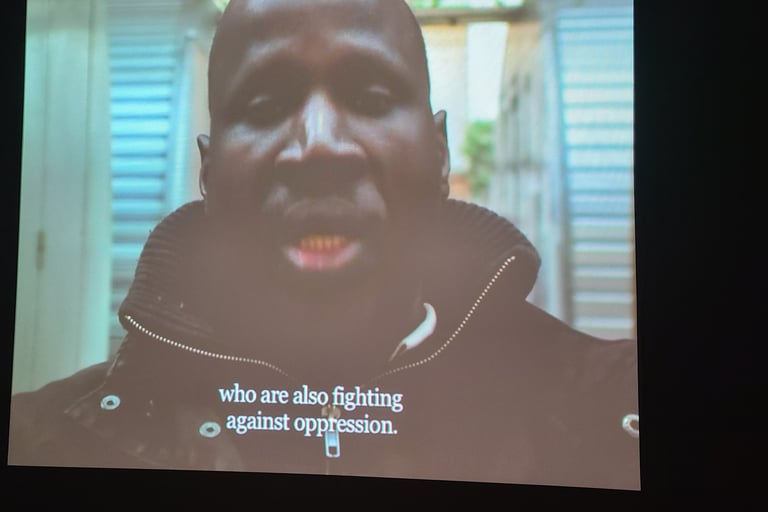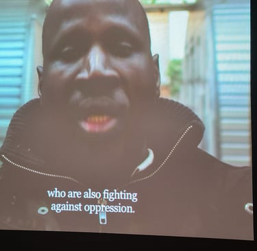 The white walls of the gallery contrasted the largely achromatic works in the main room while also highlighting the few splashes of color – especially within the photography collage of Carmen Winant’s “Clinic Pictures” and the untitled furniture piece by Caroline Kent and Nate Young. Both works were largely inspirational in the sense that the former honored the often underappreciated legacy of women in healthcare – especially prescient with the recent restrictions enacted on women’s health - while the latter was created explicitly as an heirloom to be gifted to their progenies. Following this theme, the series of videos by Bouchra Khalili, titled “Mother’s Tongue”, consisted of a series of progressive political texts recitations by immigrants in France, Italy, and the United States. These often caliginous and intimate videos alluded to the heritability of revolutionary thought, with the translation of the recitation into unwritten and disappearing languages acting as a cryptic reminder that the existence of these radical philosophies from Malcolm X and Edouard Glissant are just as at risk of being lost as the languages in which they are being spoken.
